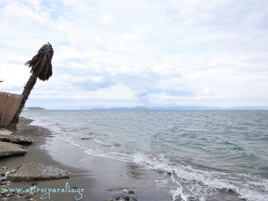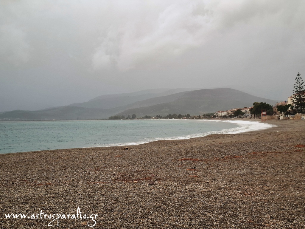 Μέτρια φουσκοθαλασιά στη κεντρική ακτή Παραλίου Άστρους. (Δευτέρα 26-1-2026 08.10, θερμοκρασία 13 βαθμοί Κελσίου) Γλωσσάρι: Καραντί = θαλασσοταραχή που επενεργεί ακόμα και μετά την κατάπαυση του ανέμου.