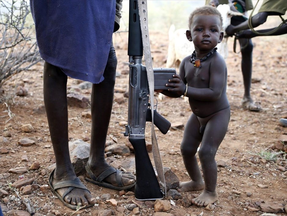 Παιδί της φυλής Τουρκάνα κρατά το όπλο του πατέρα του στο χωριό τους, που βρίσκεται στο Τρίγωνο Ιλέμι, στα βορειοδυτικά της Κένυα. Το Τρίγωνο Ιλέμι είναι μια διαφιλονικούμενη περιοχή της ανατολικής Αφρικής που διεκδικείται από το Ν. Σουδάν και την Κένυα και η οποία συνορεύει, επίσης, με την Αιθιοπία.