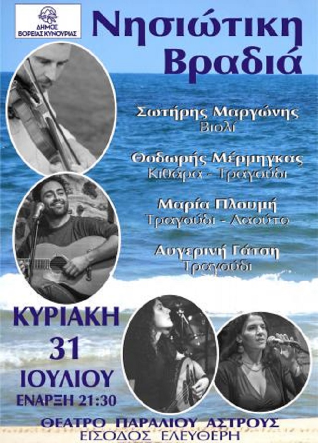 Συνέχεια«Νησιώτικη Βραδιά» στο Ανοιχτό Θέατρο Παραλίου Άστρους την Κυριακή 31 Ιουλίου