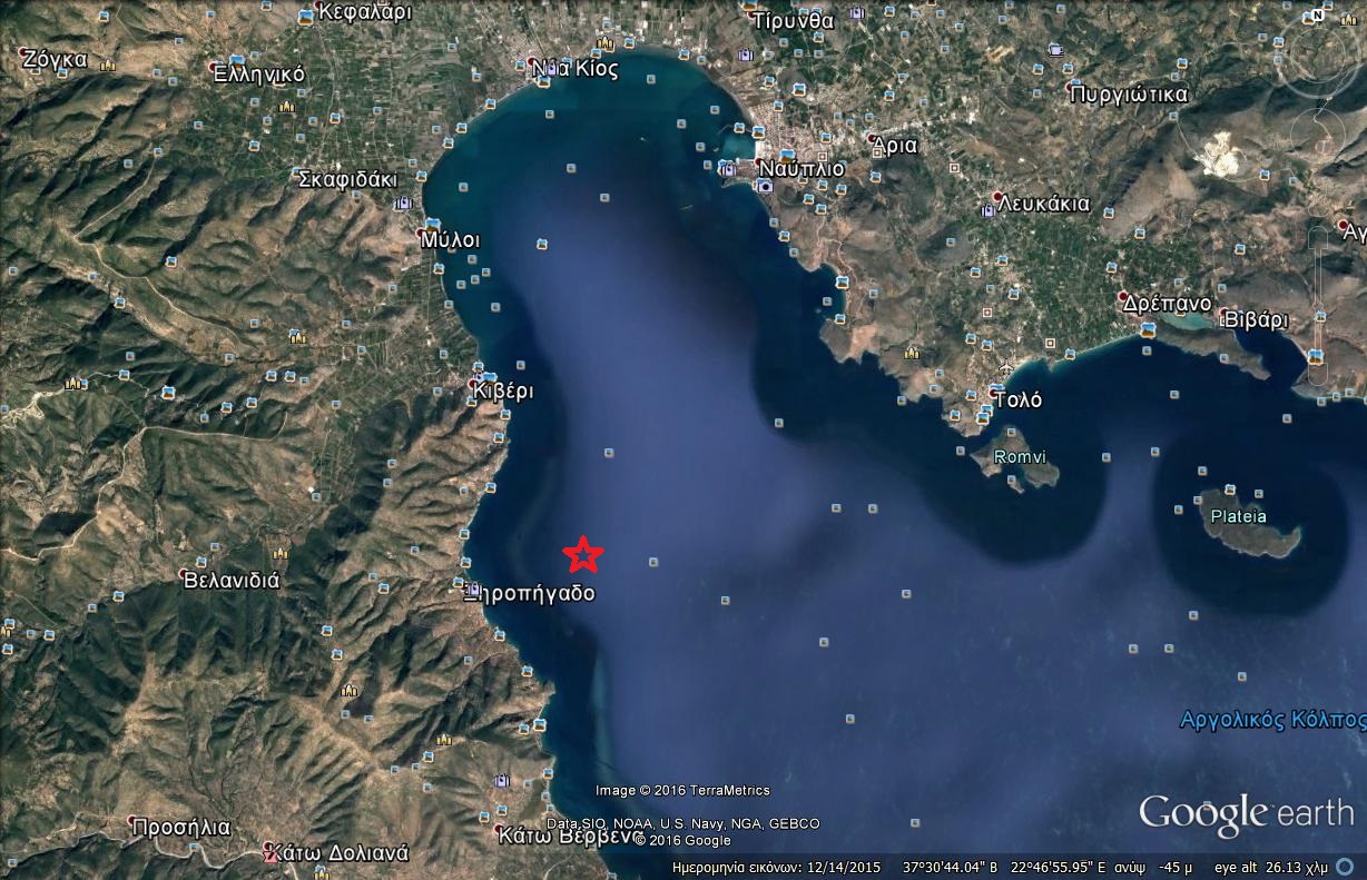 Χρόνος γένεσης: 13/11/2016 12:53:15 Τοπικό Μέγεθος (ML): 3.3 Γεωγραφικό Πλάτος: 37.4819° Γεωγραφικό Μήκος: 22.7725° Εστιακό Βάθος: 10 χμ