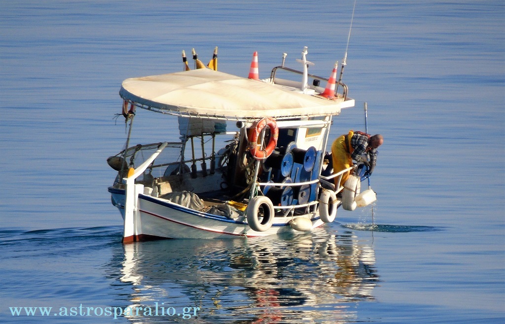 Φωτ. 20-11-2016 14.25 Ψαράς μαζεύει την σημαδούρα του κιούρτου (παγίδα για τα ψάρια) για να τον πάρει πάνω στη βάρκα. Στη θαλάσσια περιοχή του «Παλιόχανου» –http://wikimapia.org/#lang=el&lat=37.446099&lon=22.751527&z=17&m=b-.