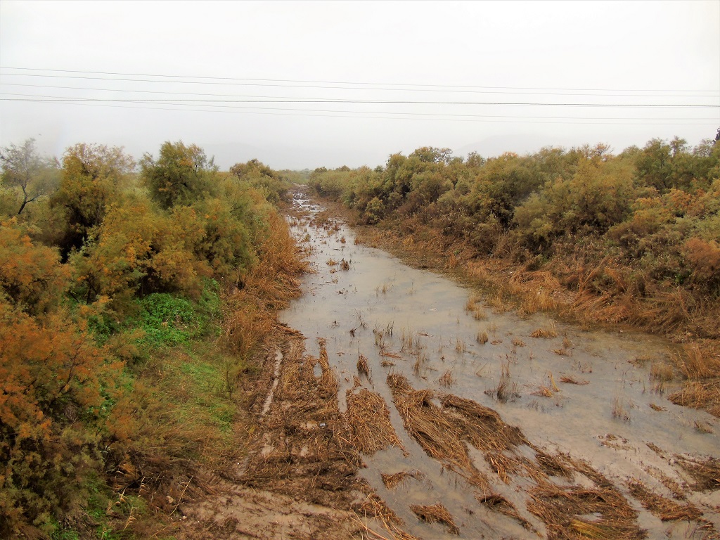 Ο χείμαρρος Τάνος μετά το γεφύρι της εκβολής του