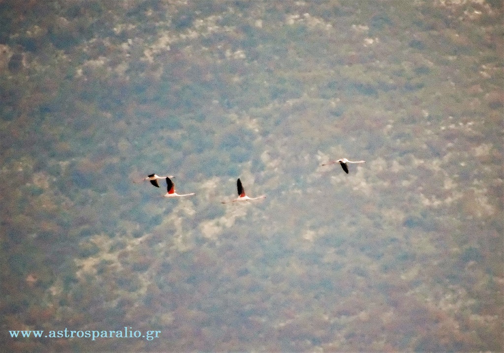 Το φωτογραφικό υλικό παρουσιάζει 4 Φλαμίγκο σε αναγνωριστική πτήση πάνω από τη θαλάσσια περιοχή στις «Πόρτες» –http://wikimapia.org/#lang=el&lat=37.398221&lon=22.759606&z=17&m=b-.