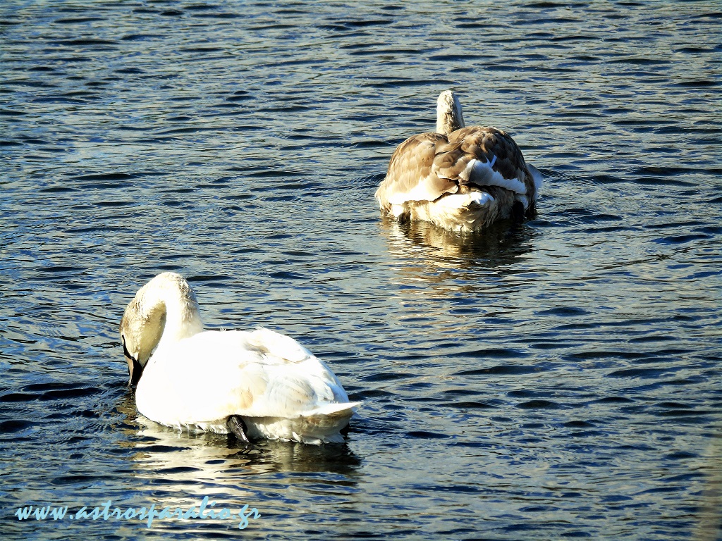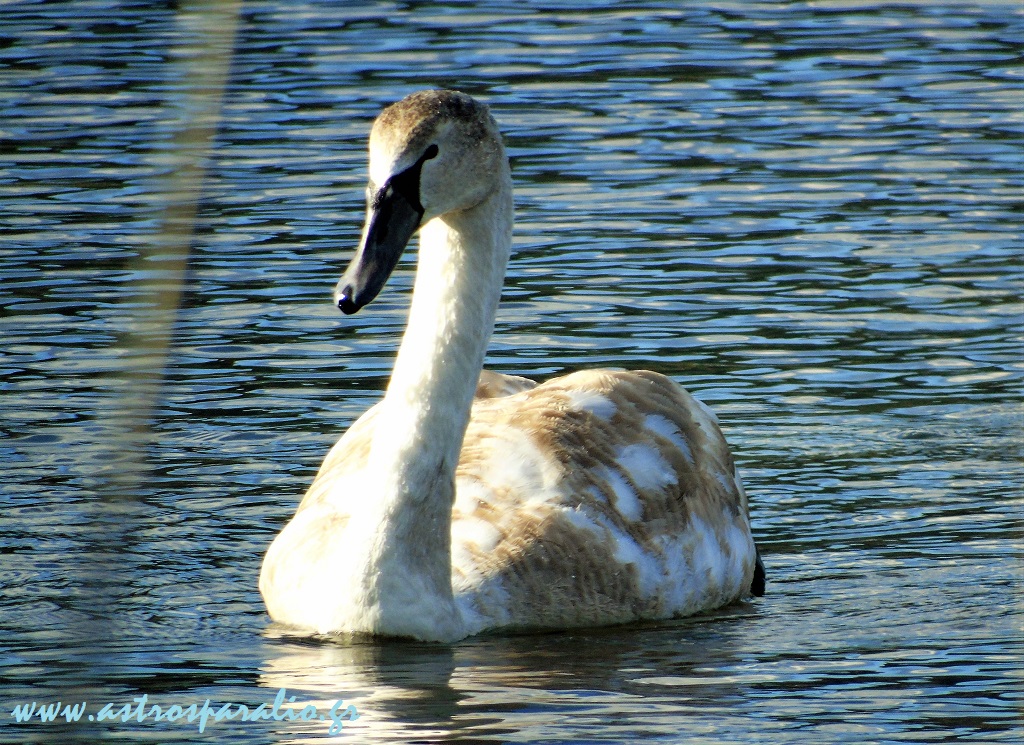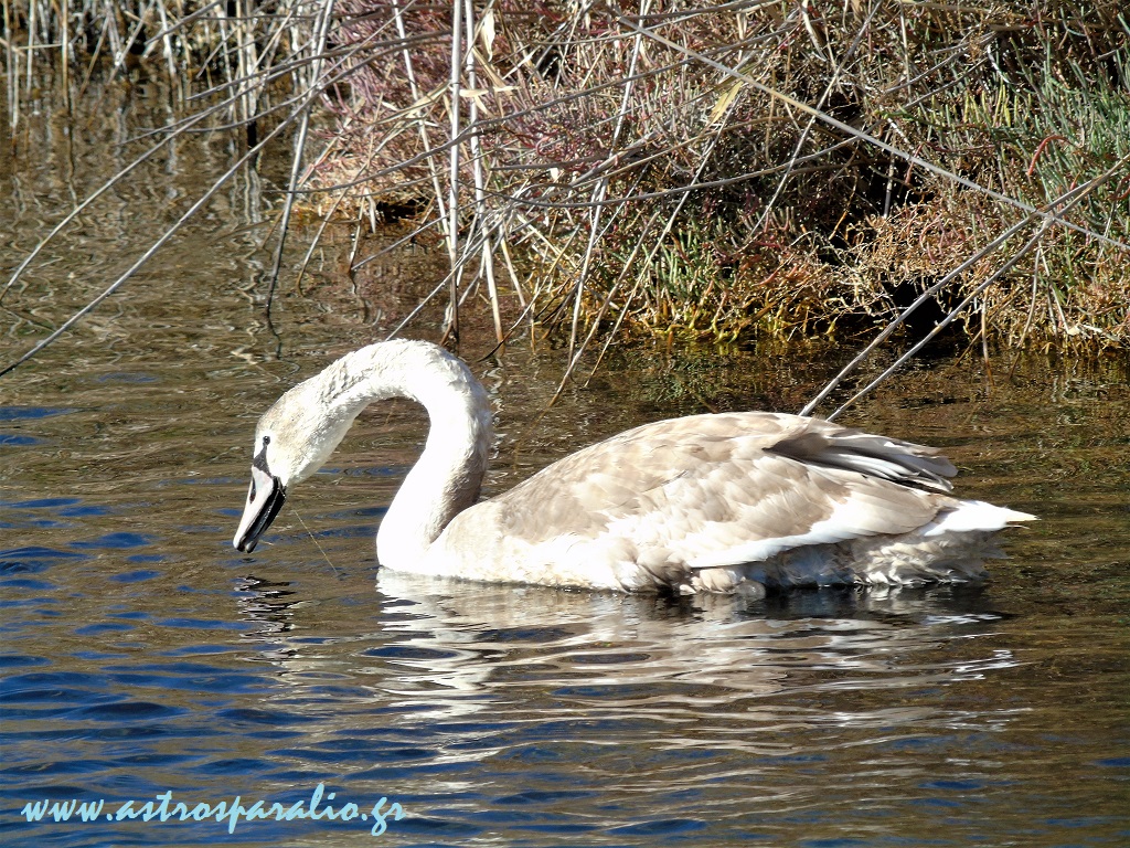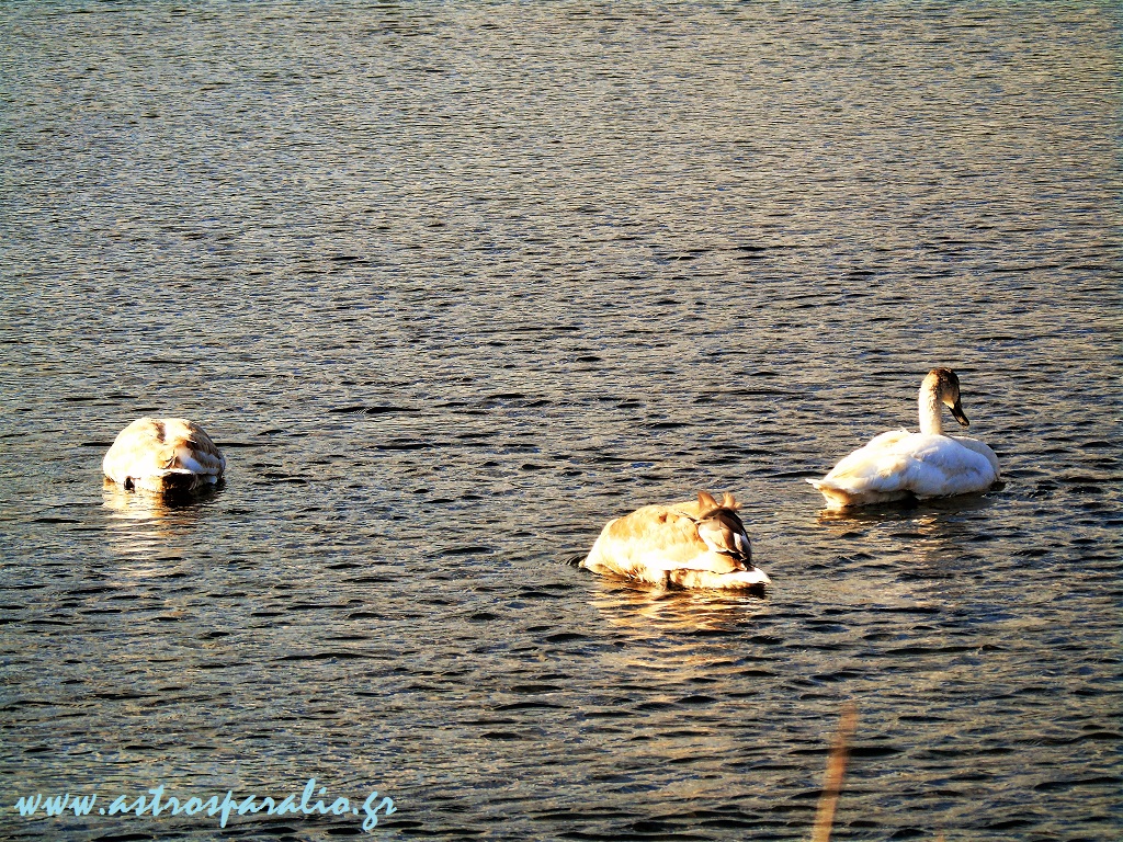 Κύκνοι, του είδους Βουβόκυκνος -Cygnus olor-, λικνίζονται στη λίμνη Μουστού –http://wikimapia.org/#lang=el&lat=37.385299&lon=22.746634&z=15&m=b-.