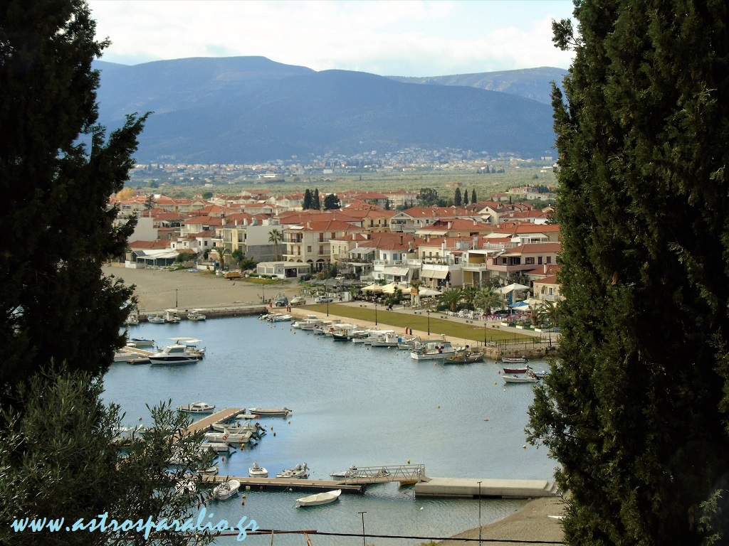 Η περιοχή του λιμανιού του Παραλίου Άστρους όπως φαίνεται από τον ενδιάμεσο δρόμο του «Νησιού» –http://wikimapia.org/#lang=el&lat=37.415707&lon=22.768494&z=19&m=b-.