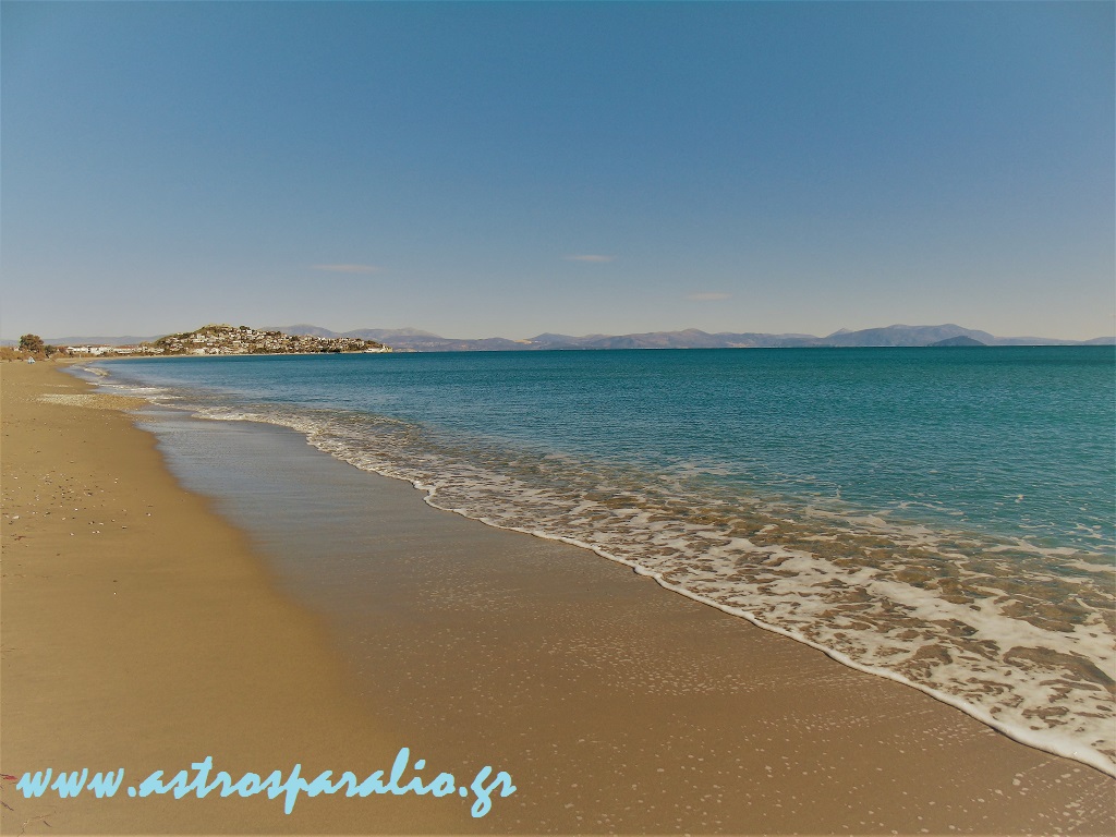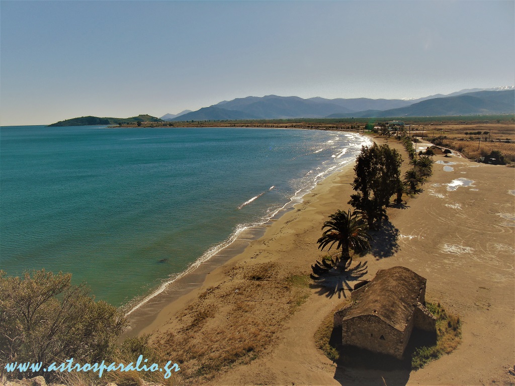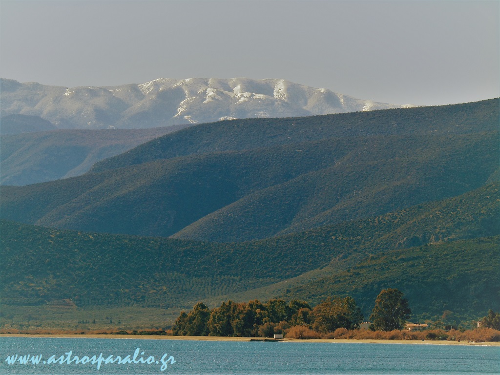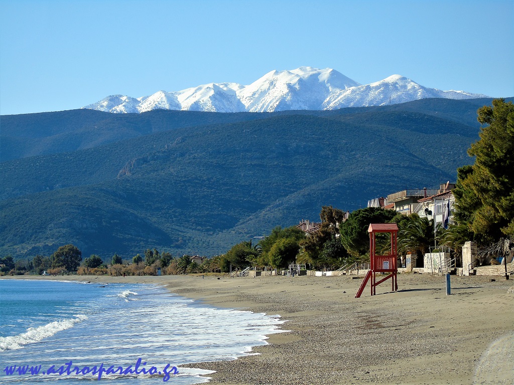 Η «Ακτή Καλλιστώ» –http://wikimapia.org/#lang=el&lat=37.412607&lon=22.762368&z=18&m=b– στο Παράλιο Άστρος, ψηλά στο φόντο η «Μεγάλη Τούρλα» ή «Μαλεβός», η ψηλότερη κορφή της οροσειράς του Πάρνωνα -1935 μέτρα-. (Φωτ. 12-1-2017, 12.00)