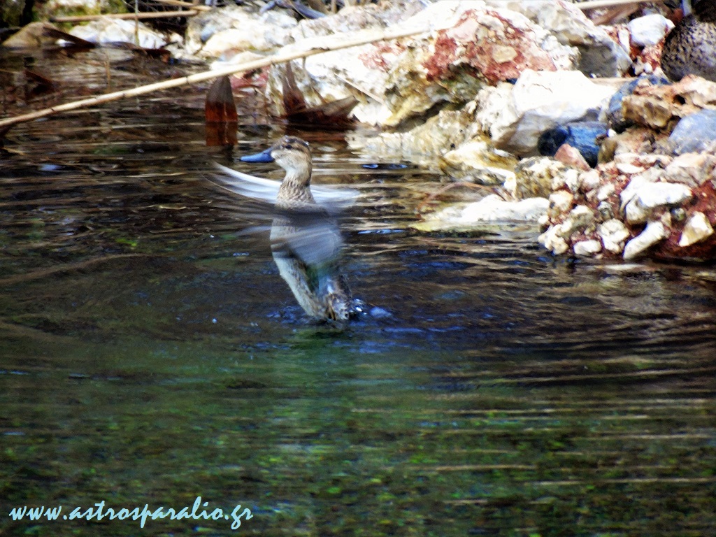 Καπακλής, είδος αγριόπαπιας, στεγνώνει τα φτερά του στη λίμνη Μουστού. (Φωτ. 17-1-2017, 13.25)
