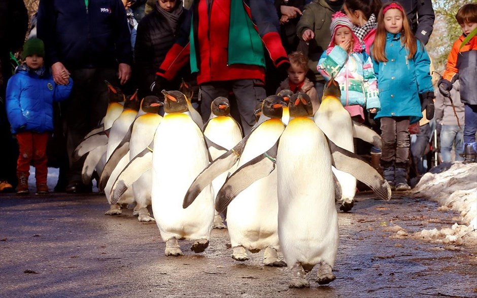 Κόσμος ακολουθεί αυτοκρατορικούς πιγκουίνους, καθώς αυτοί εξερευνούν ελεύθεροι το χώρο του ζωολογικού κήπου της Ζυρίχης, κατά τη διάρκεια μίας «παρέλασης πιγκουίνων». Κατά τη διάρκεια της αποκαλούμενης «παρέλασης», τα ζώα βγαίνουν έξω από το χώρο εγκλεισμού τους και οι επισκέπτες μπορούν να περπατήσουν μαζί τους στους χώρους του ζωολογικού κήπου. Πηγή: naftemporiki.gr