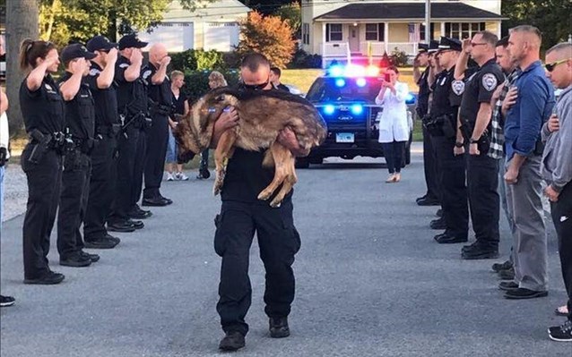 Συγκινητικό ήταν το αντίο Αμερικανών αξιωματικών σε σκύλο της αστυνομίας, ο οποίος έπασχε από επιθετική μορφή καρκίνου του ήπατος. Σχηματίζοντας τιμητική φρουρά, αστυνομικοί στο Μίντλταουν του Κονέκτικατ, στις ΗΠΑ, αποχαιρέτισαν κατά τις τελευταίες του στιγμές τον Γερμανικό Ποιμενικό, λίγο πριν υποβληθεί σε ευθανασία, το Σάββατο. Τον σκύλο, ο οποίος άκουγε στο όνομα Χάντερ, κρατούσε αγκαλιά […]