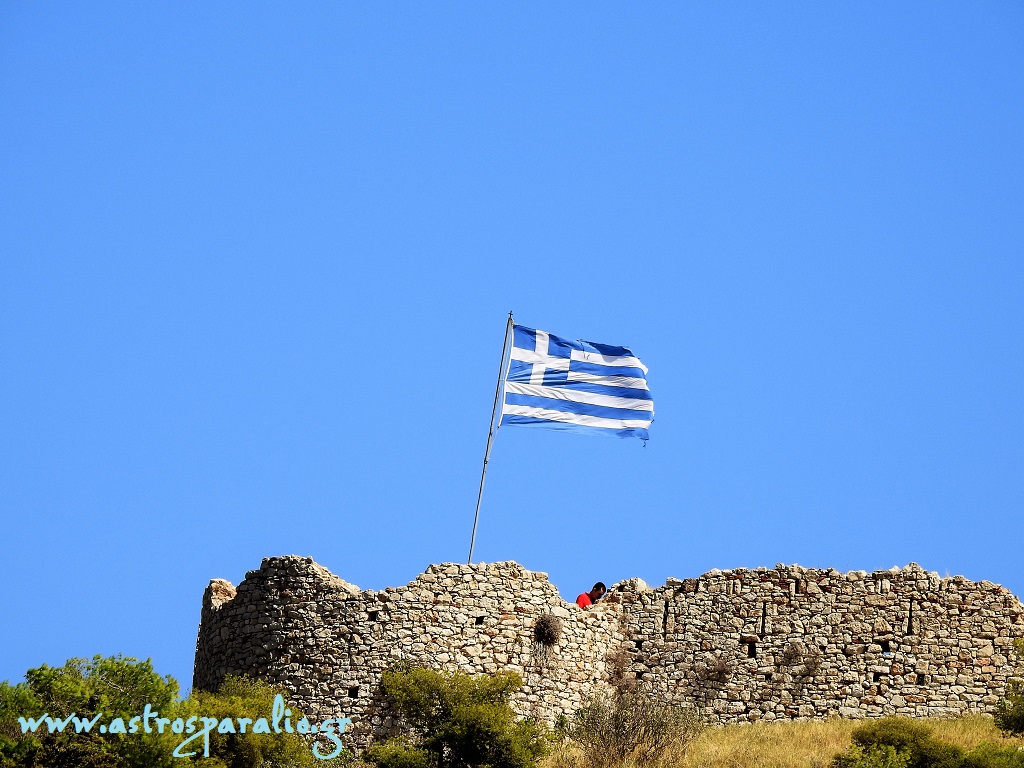 Νο 1. Σημαία του Κάστρου του Άστρους Πουνέντης -νοτιοδυτικός άνεμος- 5άρης+ φυσά και μας «τρελαίνει», ο δεύτερος στη κλίμακα του χειρότερου καιρού για το Παράλιο Άστρος, μετά το Σορόκο -νοτιοανατολικό άνεμο-. (Φωτ. Τρίτη 12-9-2017 12.25, θερμοκρασία 29 βαθμοί Κελσίου) Νο 2. Είσοδος λιμανιού Παραλίου Άστρους