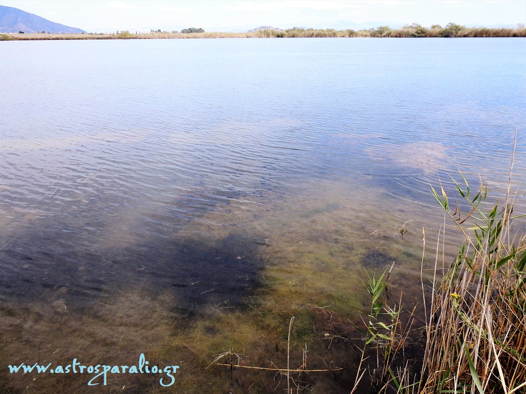 Η λίμνη Μουστού, στο κέντρο του φόντου το Νησί του Παραλίου Άστρους. (Φωτ. 25-9-2017, 12.50)