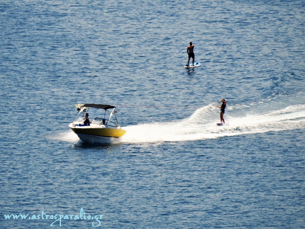 Θαλάσσιο σκι και S.U.P.A. στον όρμο του Άστρους. (Τρίτη 7-8-2018 13.20, θερμοκρασία 36 βαθμοί Κελσίου)