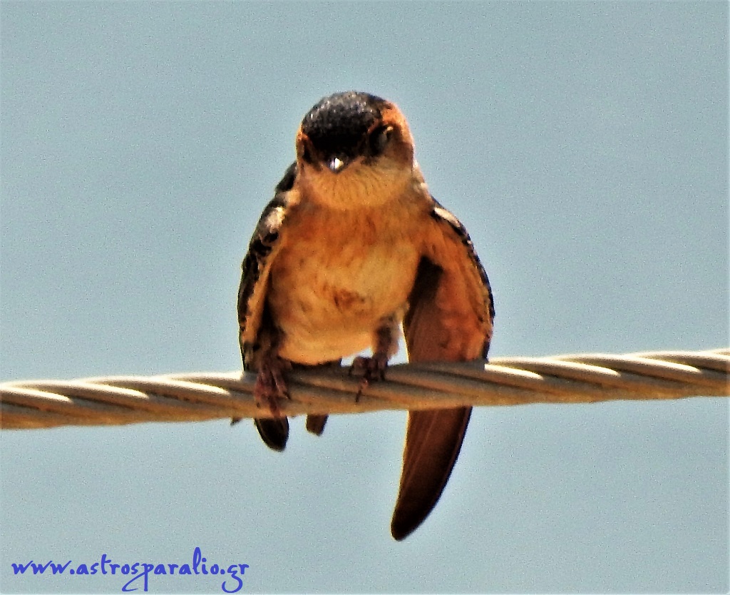 Προετοιμάζεται το χελιδόνι για να πάρει το δρόμο της επιστροφής. Πάνω σε ηλεκτροφόρο σύρμα στο Παράλιο Άστρος. (20-8-2018, 13.20)