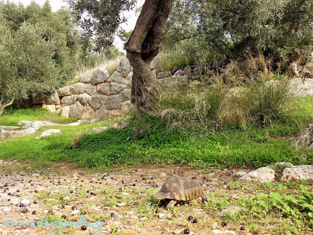 Χερσαία χελώνα δίπλα από υπολείμματα τειχών της αρχαίας Ανθήνης, στο λιμάνι της Παραλίας Αγίου Ανδρέα Κυνουρίας. (Τρίτη 30-10-2018 14.35, θερμοκρασία 23 βαθμοί Κελσίου)