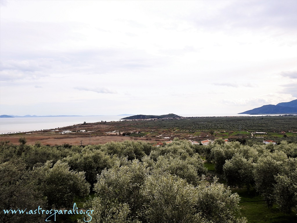 Στο φόντο ο Αργολικός, από τα Κάτω Βέρβενα, στο κέντρο διακρίνεται το Νησί Παραλίου Άστρους.