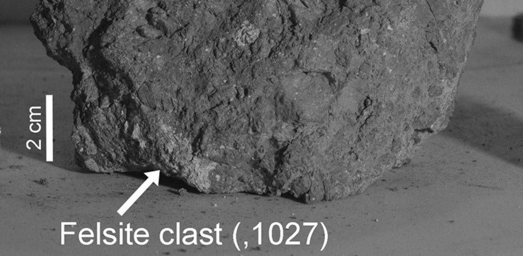 Οι επιστήμονες διαπίστωσαν ότι ο βράχος περιείχε θραύσματα 0,08 ουγκιών (2 γραμμαρίων) χαλαζία, άστριο και ζιργκόν, τα οποία είναι σπάνια στο φεγγάρι αλλά είναι κοινά εδώ στη Γη. Οι χημικές αναλύσεις έδειξαν ότι το κομμάτι κρυσταλλώθηκε σε οξειδωμένο περιβάλλον, σε θερμοκρασίες συμβατές με εκείνες που βρέθηκαν στην κοντινή υπόγεια επιφάνεια της πρώιμης Γης, σύμφωνα με όσα ανέφεραν μέλη της ομάδας μελέτης.