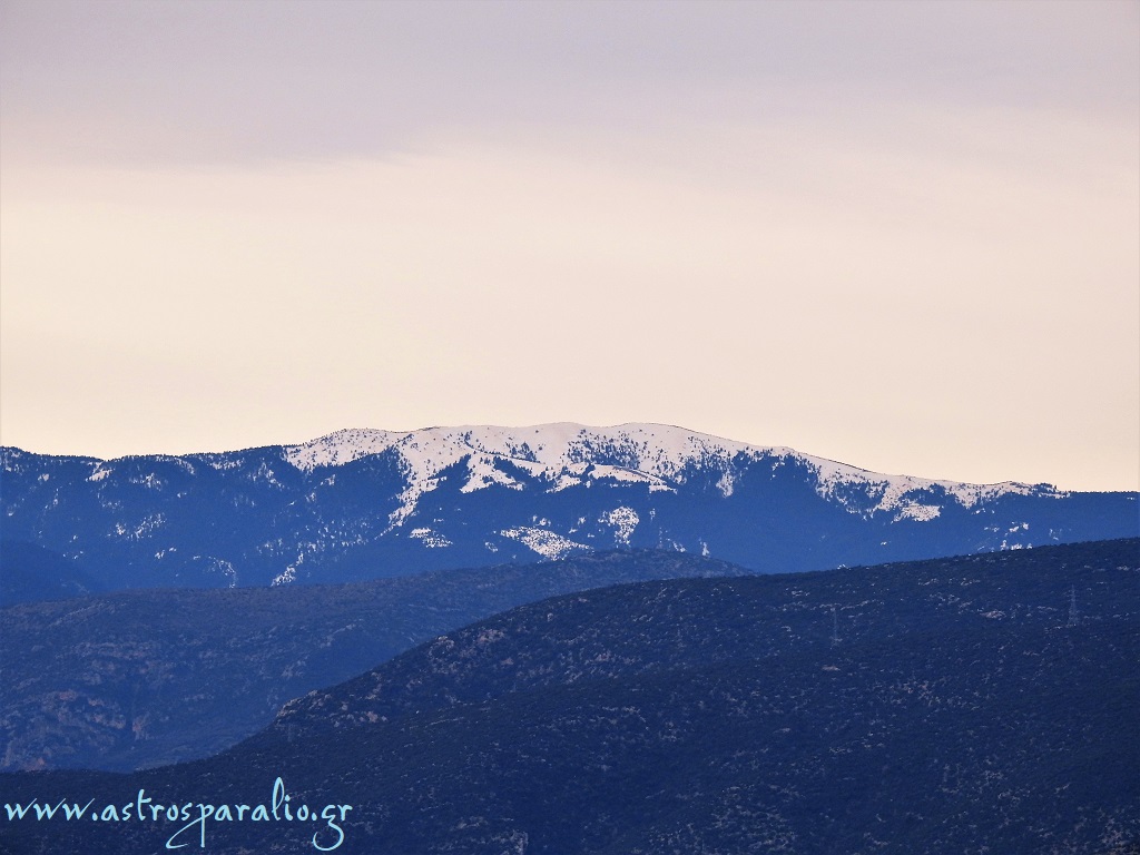 Ο ζεστός καιρός των τελευταίων ημερών απογυμνώνει από χιόνι την οροσειρά του Πάρνωνα με ταχύ ρυθμό. Φωτ. από το Παράλιο Άστρος.