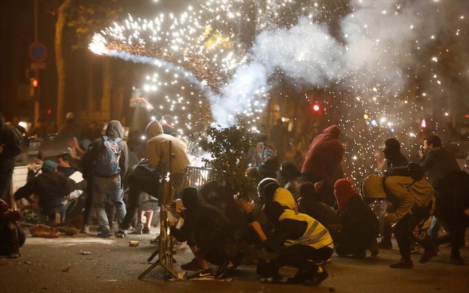 Διαδηλωτές συγκρούονται με δυνάμεις της αστυνομίας στους δρόμους της Βαρκελώνης,