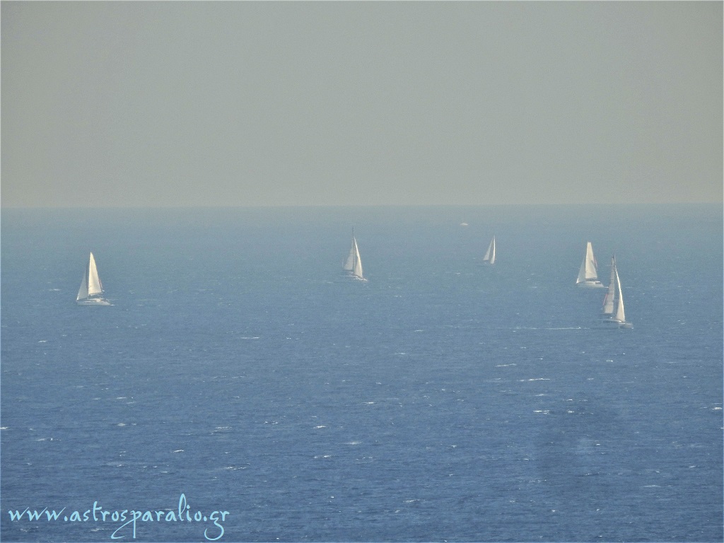 Το πρώτο γκρουπ καταμαράν, που συμμετέχουν στο 10ο Catamarans Cup 2019 https://astrosparalio.gr/2019/09/16/48499/, κατευθύνεται στο λιμάνι Παραλίου Άστρους από τις Σπέτσες με βοριά 5άρη. Τα σκάφη είναι στο ύψος του *Αρκαδικού Χωριού*. (22-10-2019, 14.50)