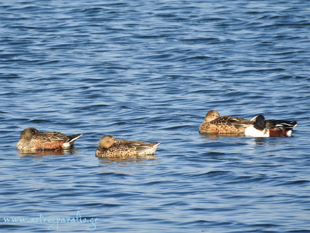 Αφίχθηκαν οι πρώτες Χουλιαρόπαπιες Spatula clypeata, για τη περίοδο 2019 – 2020, οι «χρωματιστές» είναι αρσενικές.