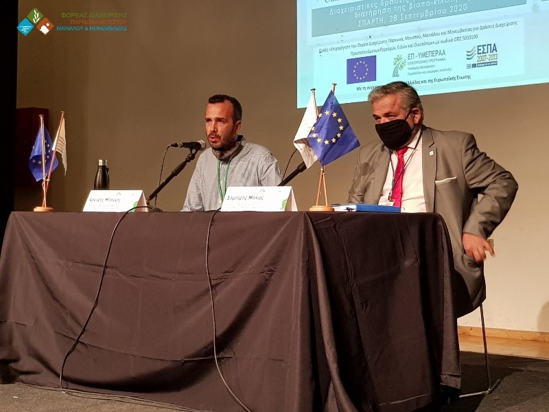 Με επιτυχία ολοκληρώθηκε η ημερίδα που πραγματοποίησε ο Φορέας Διαχείρισης Πάρνωνα, Μουστού, Μαινάλου και Μονεμβασίας, με θέμα «Διαχειριστικές δράσεις για την προστασία και διατήρηση της βιοποικιλότητας» την Δευτέρα 28 Σεπτεμβρίου 2020 στο Πνευματικό Κέντρο Σπάρτης.