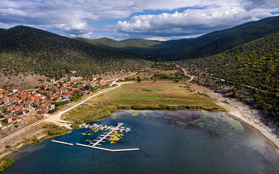 Ο αριθμός δεν ακούγεται εντυπωσιακός, το αποτέλεσμα όμως που έχει στην ίδια τη λίμνη και στη ζωή των ανθρώπων της είναι. Ο πρόεδρος θυμάται παλιά, όταν οι κάτοικοι έδεναν τις βάρκες τους από τα σπίτια. «Θυμάμαι παιδί εγώ, το ’68, όταν ήμουν δέκα χρονών, τα πρώτα σπίτια στο χωριό ήταν μέσα στη λίμνη. Από τα ντουβάρια από τις αυλές πηδούσαμε και κάναμε μπάνιο», μου εξηγεί, δείχνοντάς μου τα 200 μέτρα που χωρίζουν πλέον τα πρώτα σπίτια από την όχθη. Για έναν επισκέπτη που χάνεται το μάτι του στην ομορφιά και στη φύση της λίμνης, δεν είναι εύκολο να το παρατηρήσει. Με μια προσεκτική ματιά, όμως, τα σημάδια της απομάκρυνσης της λίμνης αποκαλύπτονται ένα ένα: η σειρά των πασσάλων που μετακινούνταν κάθε χρόνο όλο και πιο μέσα για να δένουν οι ψαράδες τις βάρκες, το παλιό μέτρο που υπολόγιζε τη στάθμη της λίμνης και που πλέον χάσκει ολόκληρο έξω από το νερό, οι πεζογέφυρες που μπήκαν σφήνα για να ενώνουν τη στεριά με τα νερά που απομακρύνθηκαν λίγο ακόμα και φέτος.