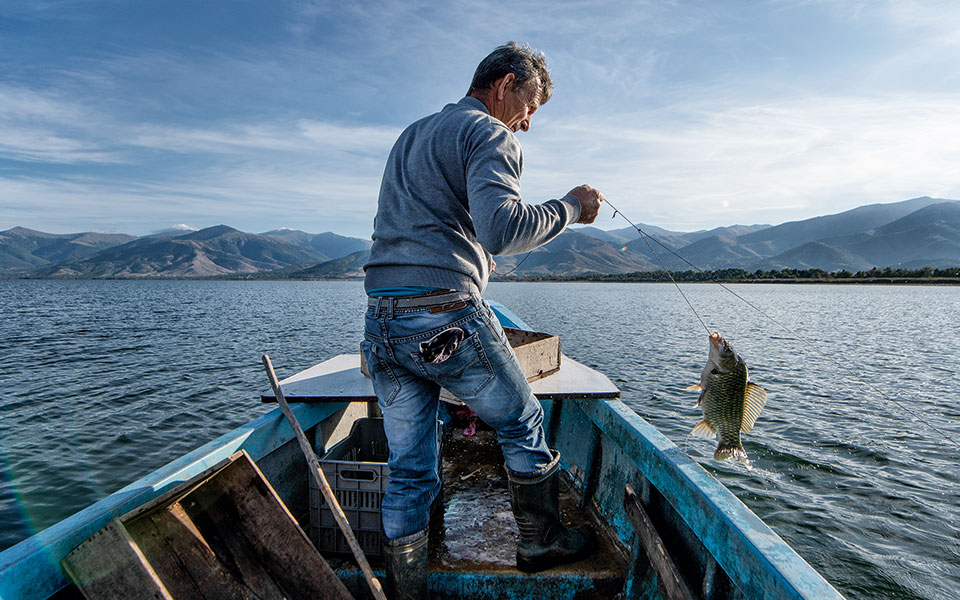 Ο ήλιος έχει μόλις σηκωθεί. Η Μεγάλη Πρέσπα φωτίζεται μεγαλόπρεπη ανάμεσα στα βουνά της Δυτικής Μακεδονίας. Το μόνο που ταράζει την απόλυτη ηρεμία είναι τα βιαστικά βήματα ενός ψαρά στην προβλήτα. Ο Σταύρος Δημανόπουλος δεν πολυκοιτάζει γύρω του. Έχει αφήσει τα παραγάδια του για τρεις ημέρες στο νερό και τώρα βιάζεται να τα μαζέψει. Πηδάει στον «Άγιο Νικόλαο», την αγαπημένη του βάρκα, και ξανοίγεται στη λίμνη. Πρώτα κουπί. Μετά μηχανή. Ξέρει κάθε πέτρα και κάθε σημάδι σαν την παλάμη του. Γεννημένος και μεγαλωμένος στο παραλίμνιο χωριό των Ψαράδων, έχει ζυμώσει όλο του το είναι με τα νερά της λίμνης. Όταν τον ρωτάω ποια η σχέση του μαζί της, στην αρχή σαστίζει. «Η σχέση μου; Είναι η ζωή μου! Έχουμε βάλει όνειρα πάνω. Την οικογένειά μας, όλα…»