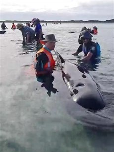 Ωστόσο, οι φάλαινες που έζησαν, και οι οποίες διασώθηκαν δύο φορές, παρέμειναν κοντά στην ακτή και μπορούσαν να εγκλωβιστούν ξανά στην παραλία, ανέφεραν αξιωματούχοι της άγριας πανίδας.