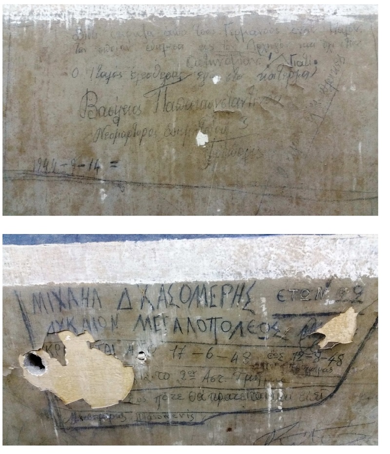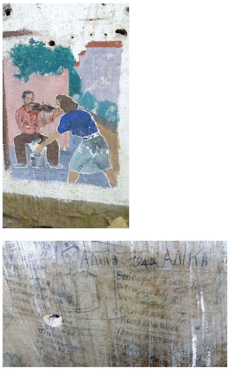 ζωγραφιές, μάλιστα κάποιες ιδιαίτερης εικαστικής αξίας, τόσο από την Κατοχή όσο