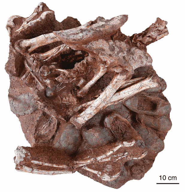 Τον ενθουσιασμό των επιστημόνων έχει προκαλέσει η πρώτη ανακάλυψη ενός απολιθωμένου δεινοσαύρου που εντοπίστηκε να κάθεται πάνω σε μια φωλιά αυγών με απολιθωμένα έμβρυα.