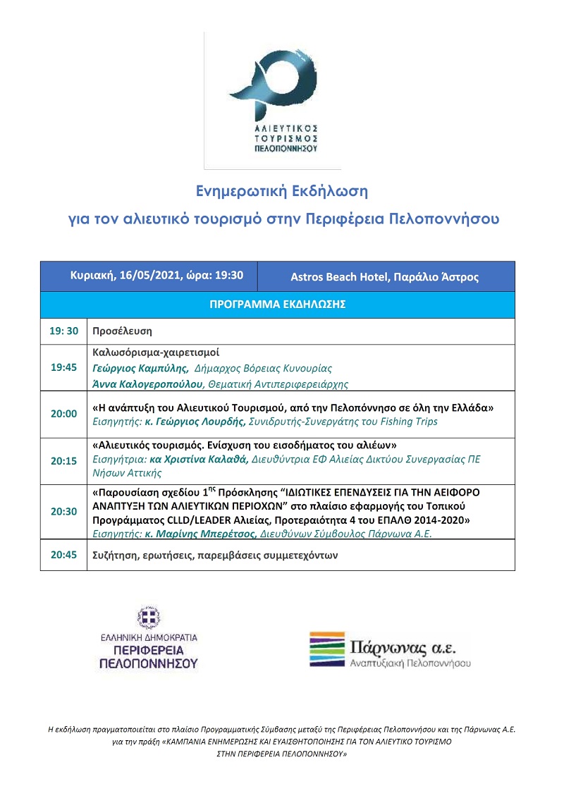 Ενημερωτική εκδήλωση για τον Αλιευτικό Τουρισμό στο Παράλιο Άστρος, τη Κυριακή 16-5-2021 και ώρα 19.30, στο ξενοδοχείο Astros Beach.