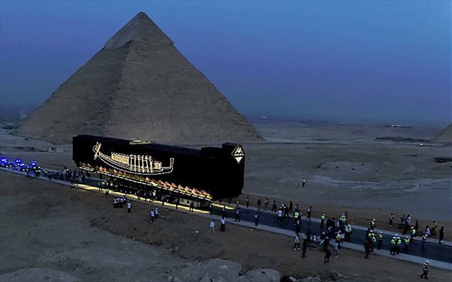 Το πρώτο σκάφος του βασιλιά Khufu, του Χέοπα, μεταφέρθηκε, ξημερώματα Σαββάτου, από τις Πυραμίδες της Γκίζας στο Μεγάλο Αιγυπτιακό Μουσείο.