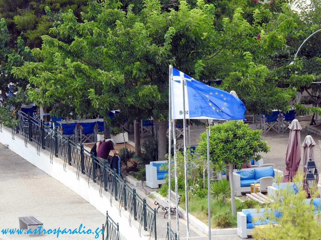 Μπάτη δείχνουν οι Σημαίες στη κεντρική πλατεία Παραλίου Άστρους.