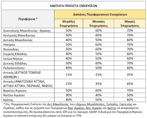 Τα ποσοστά ενισχύσεων ανά Περιφέρεια παρουσιάζονται στον πίνακα.
