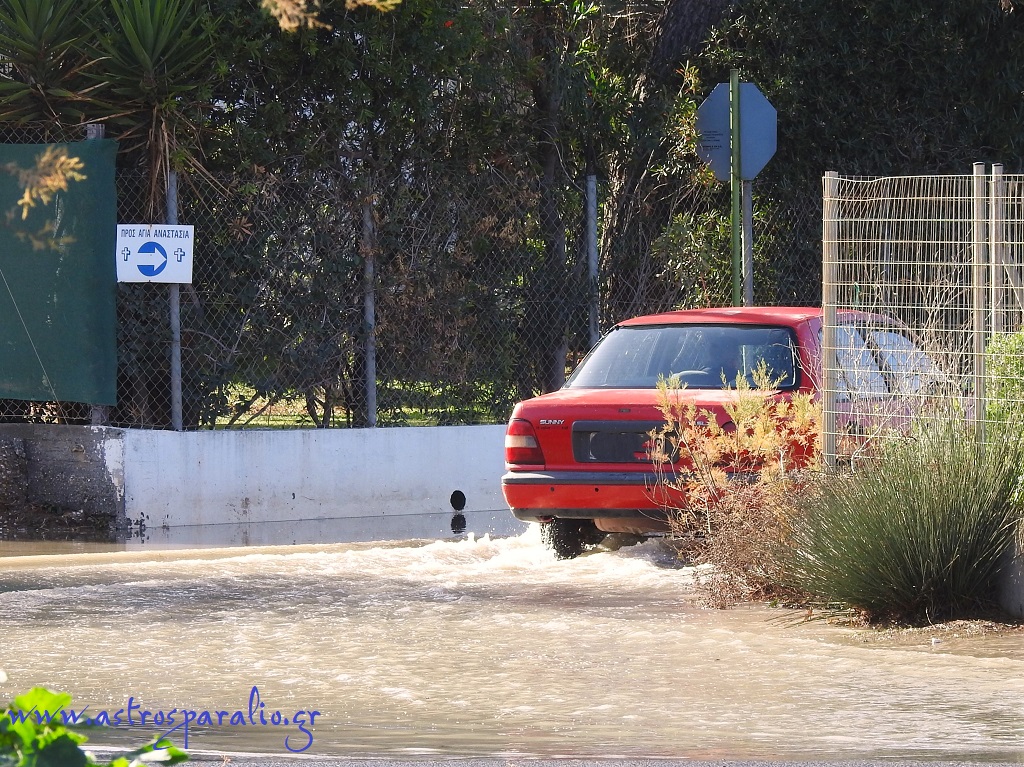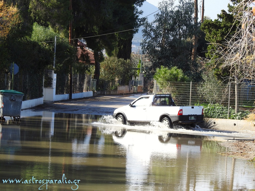 Τη νύχτα τα κύματα του νοτιοδυτικού ανέμου μπουκάρισαν, για πολλοστή φορά!! στη στεριά, στη περιοχή -Πόρτες-, εδώ , από τάφρο που υπάρχει για την απορροή των νερών της βροχής. Με αποτέλεσμα να πλημμυρίσει ο δρόμος που πάει προς Μελιγού, -Πόρτες- και Παράλιο Άστρος. Η κυκλοφορία των αυτοκινήτων γίνεται με ρίσκο των ίδιων των οδηγών.