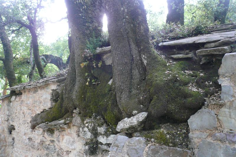 Στη μικρή αυτή εκκλησία η φύση έχει θαυματουργήσει. Δεκαεφτά πελώρια δένδρα είναι φυτρωμένα πάνω στη στέγη της, ενώ από τα θεμέλιά της αναβλύζουν τα νερά ενός κεφαλαριού. Το φαινόμενο αυτό πρέπει να οφείλεται στο ότι η εκκλησία είναι πέτρινη και θολωτή με αρκετή περιεκτικότητα σε χώμα. Σε αυτό το λίγο χώμα φύτρωσε αρχικά ένα πουρνάρι που σιγά-σιγά μεγάλωσε και έριξε και τους δικούς του καρπούς. Έτσι πάνω στην οροφή της εκκλησίας φύτρωσαν αρκετά πουρνάρια, σφεντάμια και κοκορεβιθιές που η λαϊκή παράδοση το απέδωσε σε θαύμα.