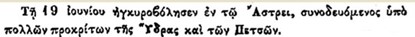 Στο Άστρος, (σημερινό Παράλιο Άστρος) διαδραματίστηκε ένα από τα σημαντικότερα γεγονότα των πρώτων μηνών της Επανάστασης του 1821. Η άφιξη στις 19 Ιουνίου 1821 του Δημητρίου Υψηλάντη, ως πληρεξούσιου του Γενικού Επιτρόπου της Αρχής και αδελφού του Αλέξανδρου, αρχηγού της Φιλικής Εταιρείας.
