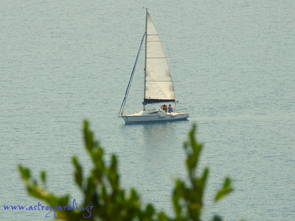 Επί ματαίω!! τα ιστία του σκάφους αναψυχής, γιαλό στο Νησί Παραλίου Άστρους.