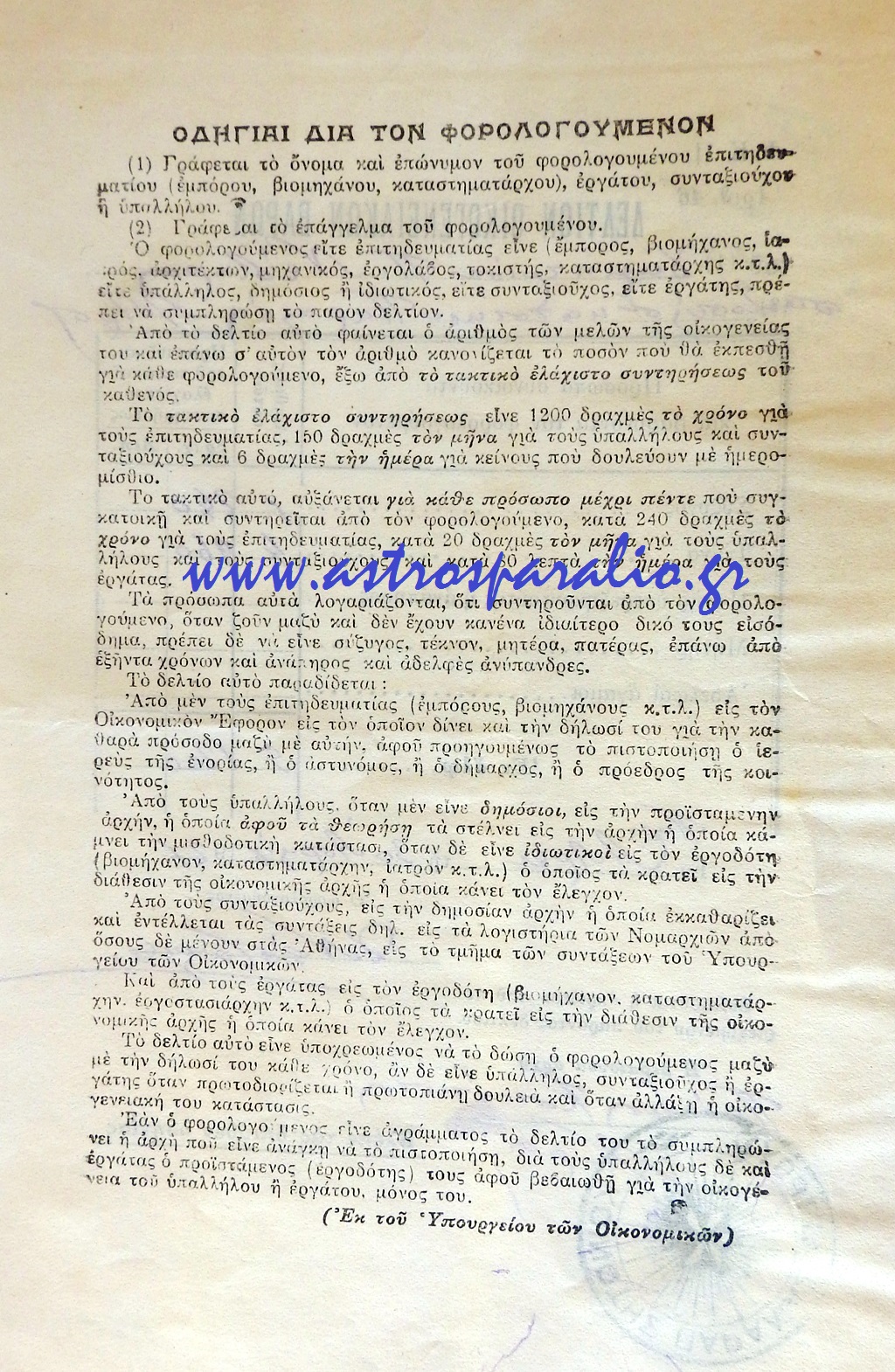 Η σύζυγος και τα 4 τέκνα επιβάρυναν τον φορολογούμενο κατά 1200 δραχμές, αρκετά μεγάλο ποσό για τα δεδομένα της εποχής.
