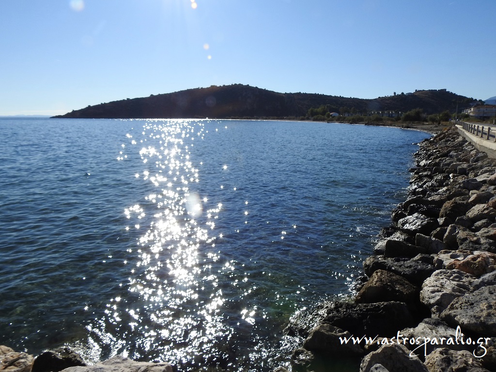 Στο φόντο το Νησί Παραλίου Άστρους, από τη θάλασσα του Ατσίγγανου. (Τετάρτη 15-10-2025 09.00, θερμοκρασία 9 βαθμοί Κελσίου)
