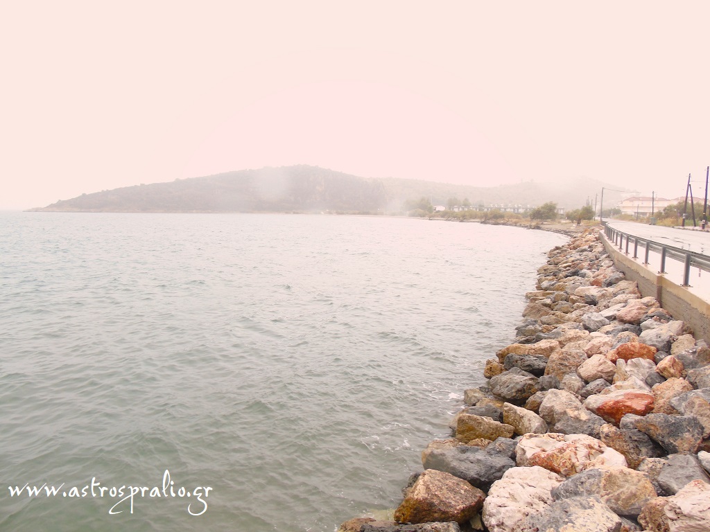 Η βροχή κάνει δυσδιάκριτο το Νησί Παραλίου Άστρους, από τη παραλία Γλυφάδα του Ατσίγγανου. (Δευτέρα 20-10-2025 09.35, θερμοκρασία 18 βαθμοί Κελσίου)