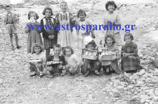 Η φωτογραφία απεικονίζει παρέα παιδιών, τα μέλη που την αποτελούν είναι από αριστερά προς τα δεξιά, τα εξής: Α) ΚΑΤΩ ΣΕΙΡΑ: 1. Βάσω Λιανού, 2. Νίκος Δημητ. Κοράλλης, 3. ; 4. Μαίρη Κόντη, 5. ; 6. Χριστίνα Κρεμμύδα, Β) ΠΑΝΩ ΣΕΙΡΑ: 1. Γιάννης Παπούλιας, 2. Αικατερίνη Κούκλη, 3. Αλέκα Κοντογιαννόπουλου, 4. Παναγιώτα Λιοντή, 5. Αικατερίνη Θεοδώρου και 6. ;