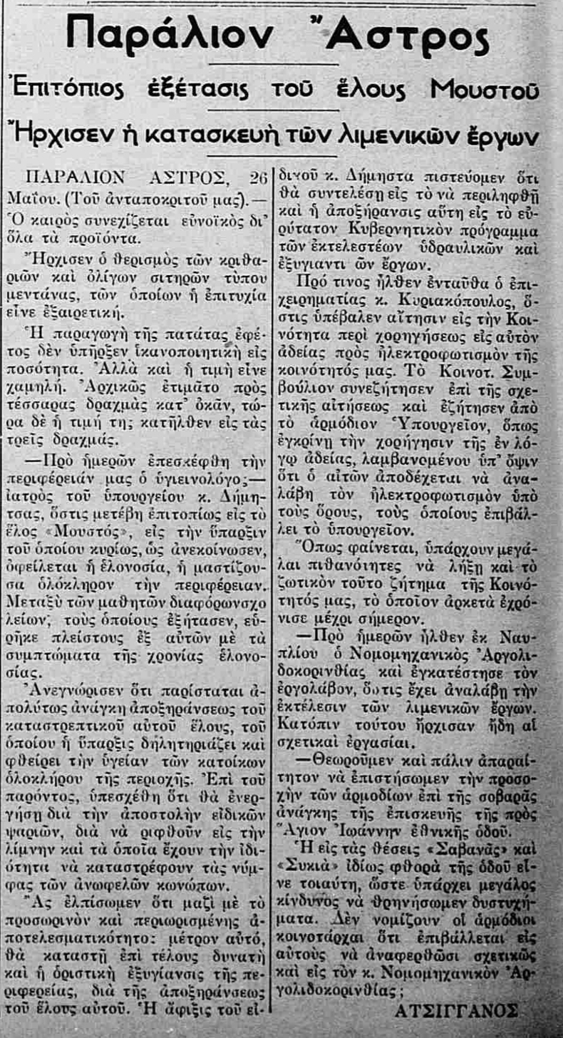 Η εφημερίδα «Κυνουρία» μας πληροφορεί:
