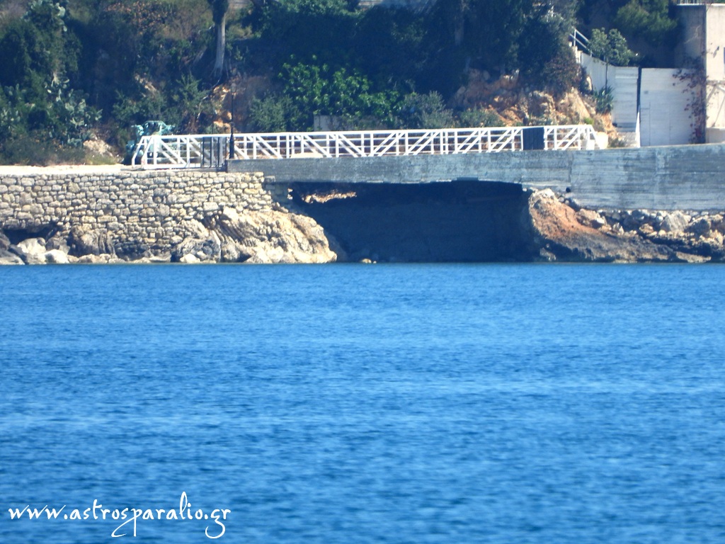 (Φωτ. η σπηλαίωση κάτω από τη πεζογέφυρα που επικοινωνεί το Ανοιχτό Θέατρο Παραλίου Άστρους)
