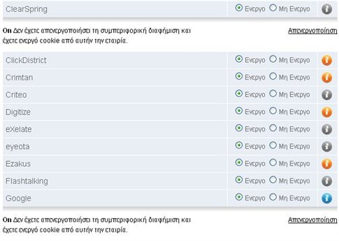 · Εάν επιλέξετε να απενεργοποιήσετε τη συμπεριφορική διαφήμιση δεν σημαίνει πως θα σταματήσετε να λαμβάνετε διαφήμιση στο internet.