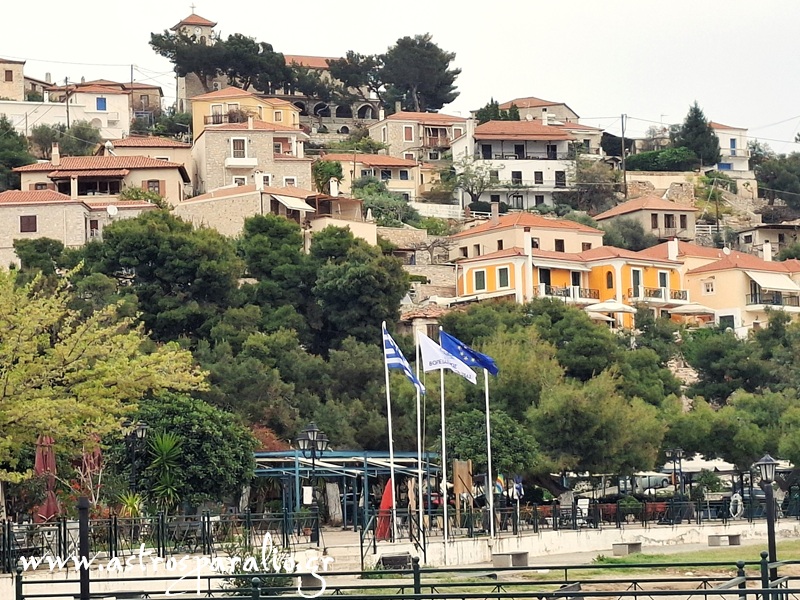 Κεντρική πλατεία και Νησί Παραλίου Άστρους. (Παρασκευή 6-3-2026 07.55, θερμοκρασία 12 βαθμοί Κελσίου)