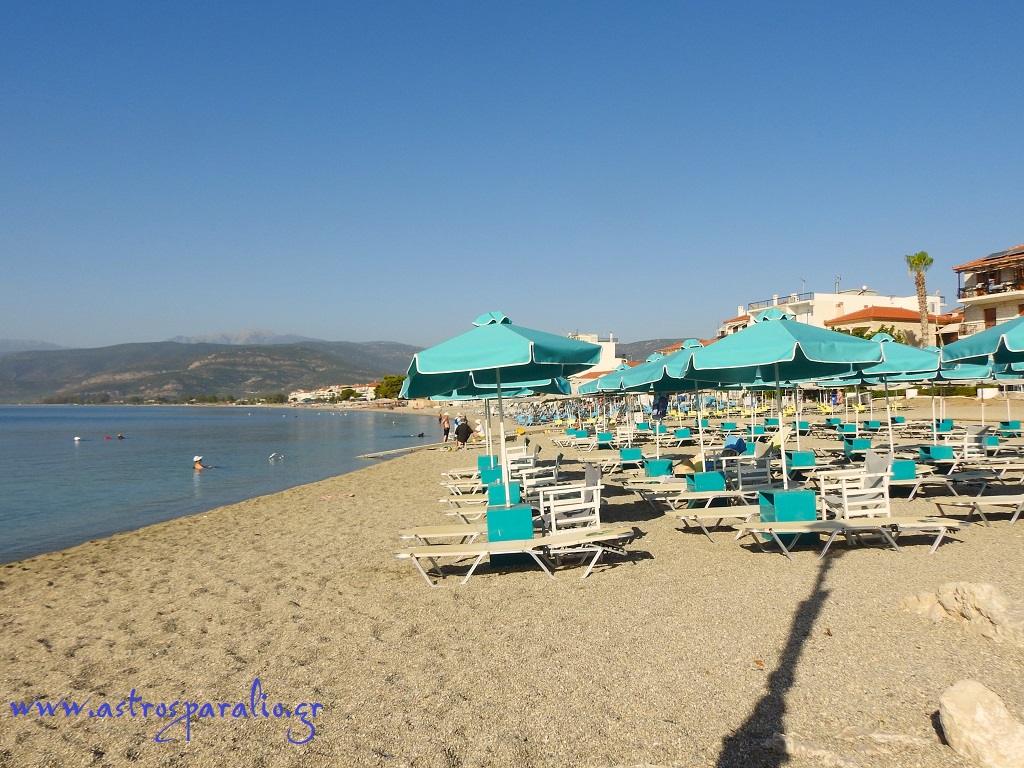 Η μικρή παραλία με τα βότσαλα πίσω από το Παλιό λιμάνι Παραλίου Άστρους. (Κυριακή 27-7-2025 09.00, θερμοκρασία 31 βαθμοί Κελσίου)