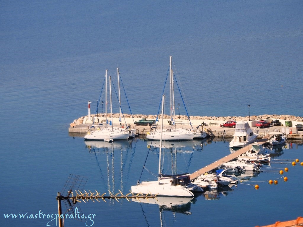Στο φόντο το λιμάνι Παραλίου Άστρους, από την «Ακτή Καλλιστώ». (Δευτέρα 21-7-2025 08.40, θερμοκρασία 31 βαθμοί Κελσίου)