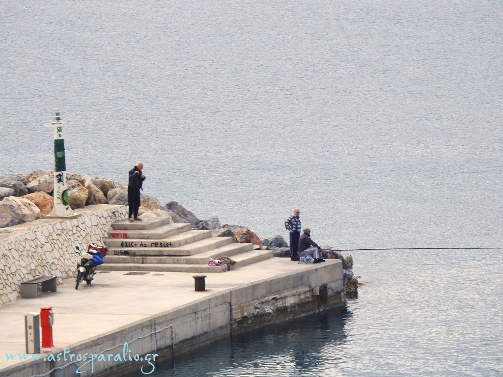 Ασθενής βροχόπτωση στο λιμάνι Παραλίου Άστρους. (Κυριακή 16-2-2025 13.05, θερμοκρασία 13 βαθμοί Κελσίου)